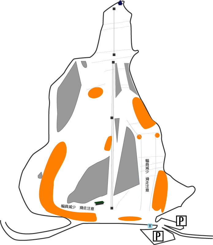 ゲレンデ内、中間駅より下は全体的に雪が薄めで部分的に規制のある個所もございます。
